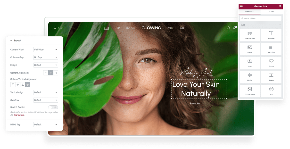 Glowing is available with both top page builders for WordPress theme: WPBakery and Elementor.