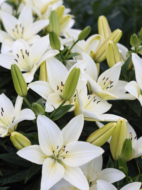 - Fleurs : en forme de trompette, très parfumées, d’un blanc immaculé, à 3 sépales et 3 pétales