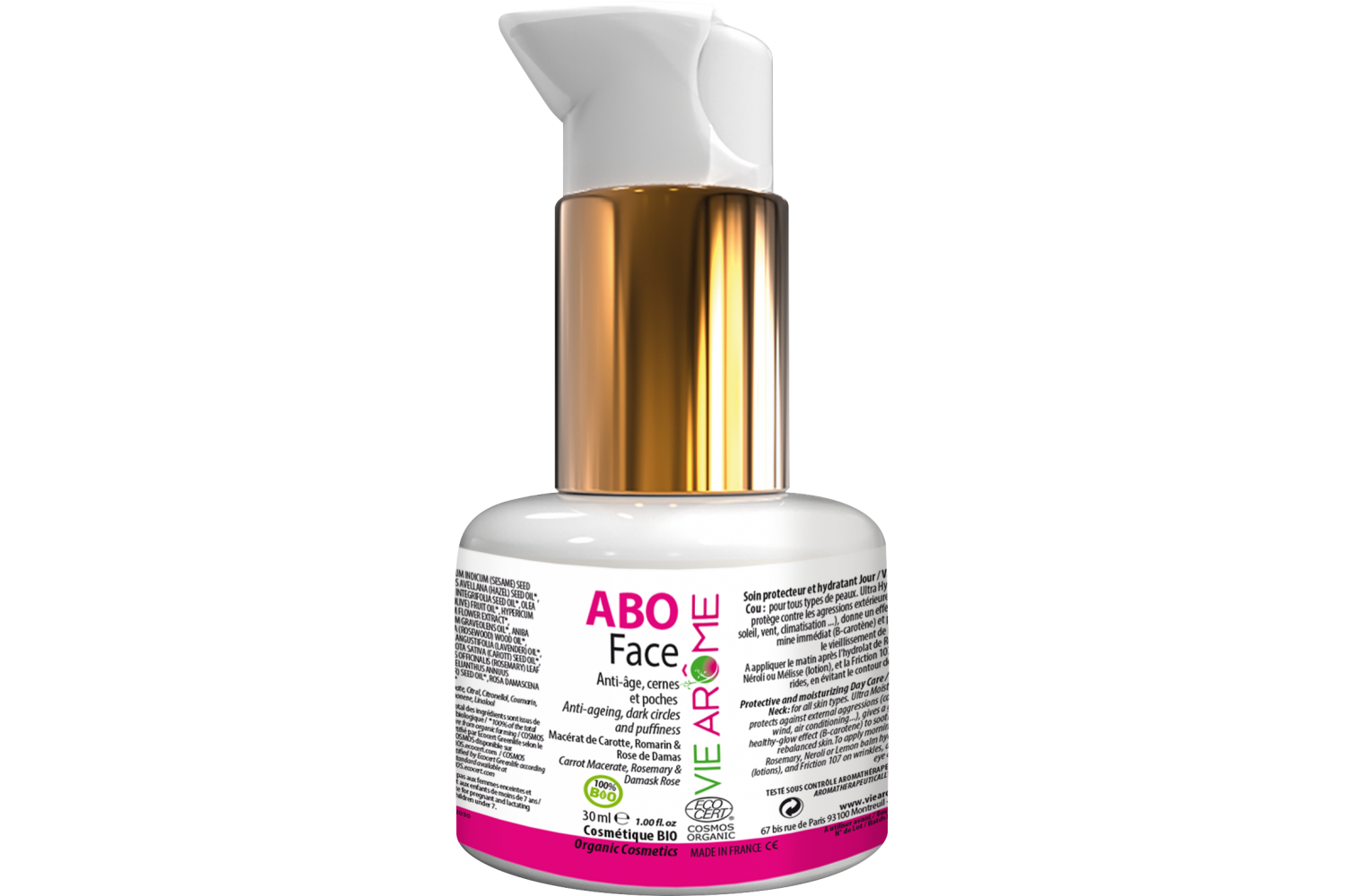 INCI : Sesamum Indicum (Sesame) Seed Oil*, Olea Europaea (Olive) Fruit Oil*, Macadamia Ternifolia Seed Oil*, Corylus Avellana (Hazel) Seed Oil*, Pelargonium Graveolens Oil*, Aniba Rosaeodora (Rosewood) Wood Oil*, Lavandula Angustifolia (Lavender) Oil*, Daucus Carota Sativa (Carott) Seed Oil*, Rosa Damascena Flower Oil*, Hypericum Perforatum Oil*